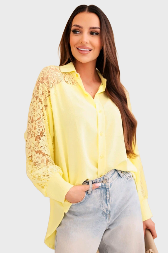Gele Blouse Dames met Kant – Oversized Elegante Blouse